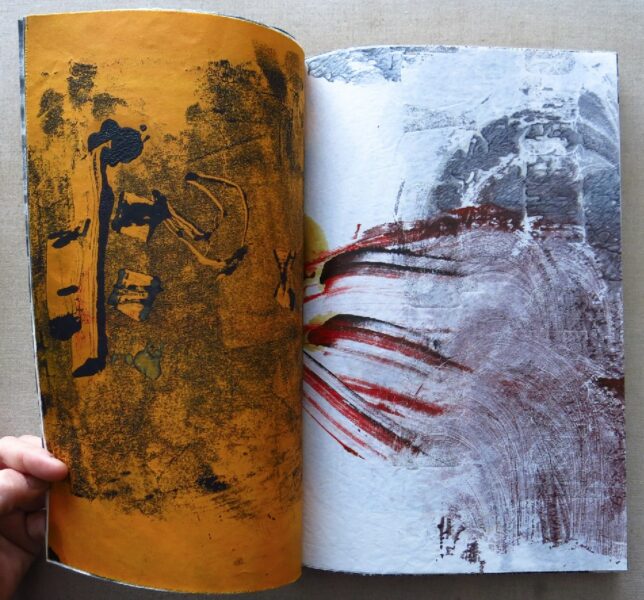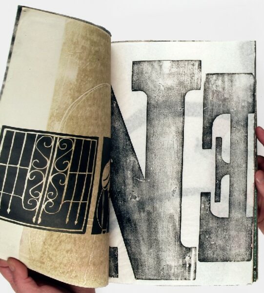 Libro de artista donde recupero máculas guardadas a lo largo de los años pasados, de los antiguos trabajos de grabado y los primeros de tipografía móvil. Éstos se intercalan con manchas generadas