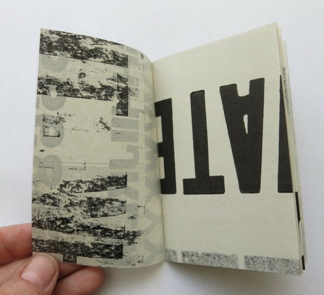 Máculas 2011 (Ate and Cloack) son unos libritos realizados a partir de máculas sobrias, con pocas sobreimpresiones y a una tinta. Cada librito es único en formato y contenido. (Sold Out)