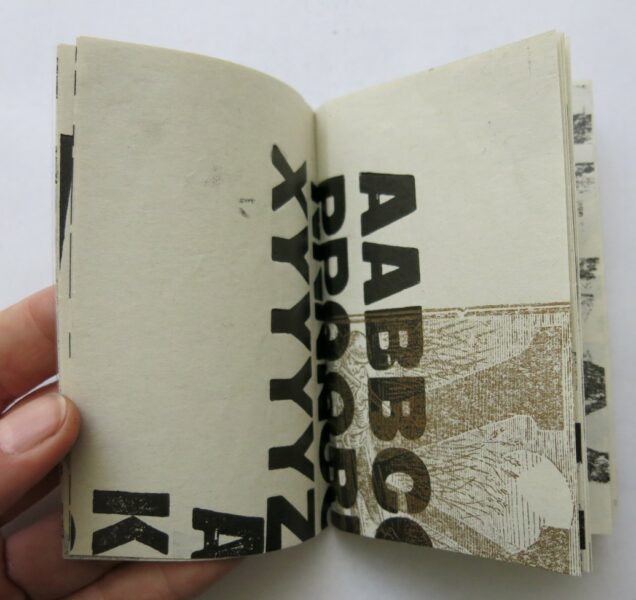 Mácula es aquel papel descartado, y que reutilizamos para limpiar las letras, probar colores, etc…Esto acaba creando sobreimpresiones arbitrarias que, en ciertos casos, pueden resultar interesantes.