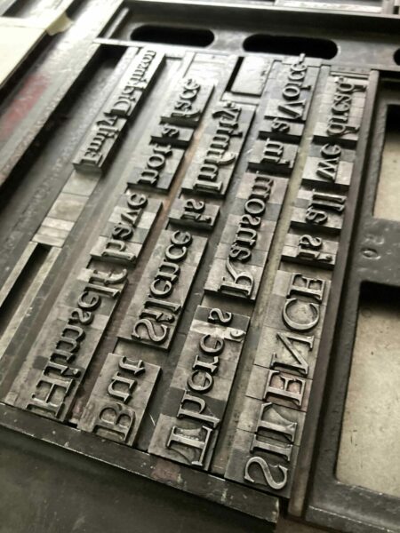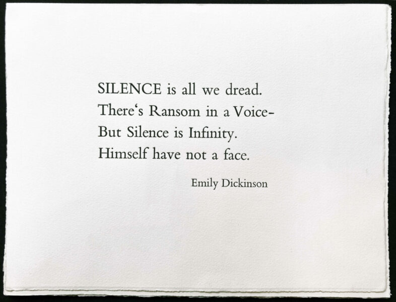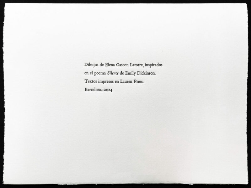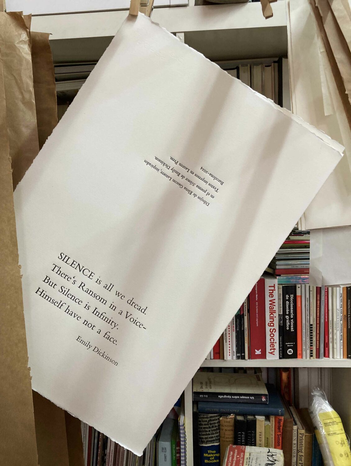 SILENCE Texto para libro de artista, Silence de Emily Dickinson / Elena GascónTipografía en plomo: Bembo 48pt _ 1 tinta2025