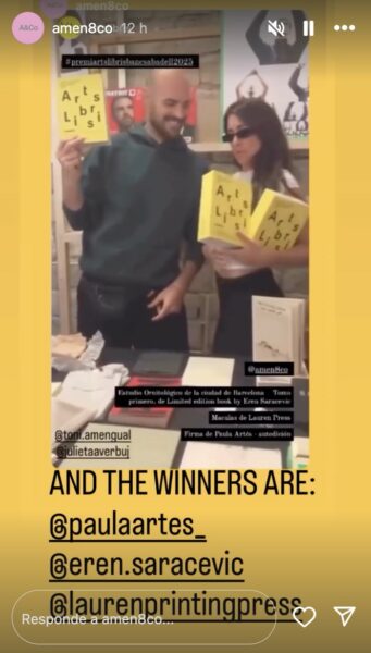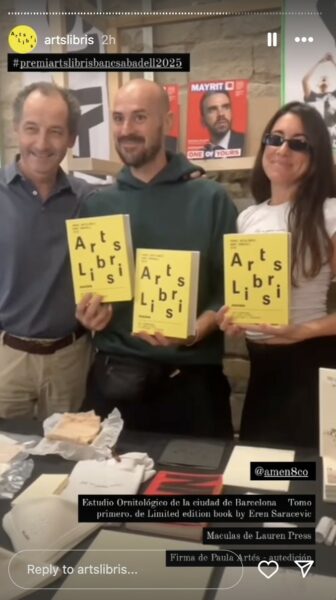 Ayer finalizó la feria Arts Libris Bcn 2025, repleta de increíbles propuestas. Muy contenta también, de que mi libro Máculas haya recibido, junto a otros, el premio Banc Sabadell, pasando a formar parte de su colección. Gracias a @amen&co, por su criterio y pasión, y por hacer llegar nuestros libros hasta el gran público.